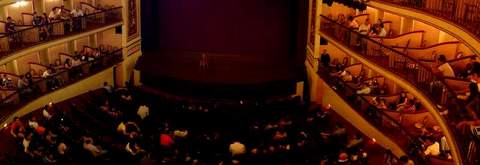 Ficamos empuleirados em um desses camarotes do 3° pavimento. A visibilidade para o palco é perfeita em qualquer posição. Esse lustre de cristal é um espetáculo a parte. Antes de iniciar o espetáculo ele sobre gradativamente. Pena que a essa altura já não tinhamos mais permissão para utilizar a câmera.