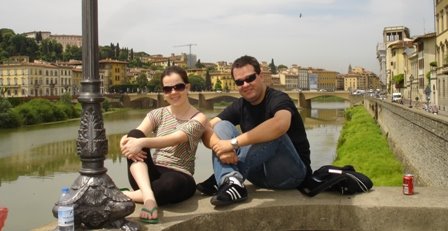 Na foto: Polliana e eu as margens do Rio Arno, que corta Firenze. A coca-cola do lado saiu de enxerida e não era minha.