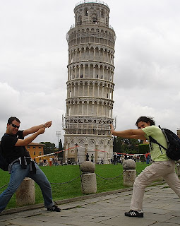 Essa torre ai. Ela inicialmente foi projetada para abrigar o sino da catedral da cidade. Quando três dos oito andares estavam prontos, notou-se uma ligeeeira inclinação, em razão de um afundamento do terreno. Tentou-se compensar a falha fazendo os outros andares um pouco maiores do lado mais baixo. Só que a estrutura afundou ainda mais pelo excesso de peso. O resultado é isso ai! Pelo menos virou mais um dos pontos turísticos da Itália. Até pouco tempo ela inclinava alguns milimetros a cada ano, mas depois de um monte de ajustes na estrutura, ela reamente parou de inclinar. Informação recente esta! =)